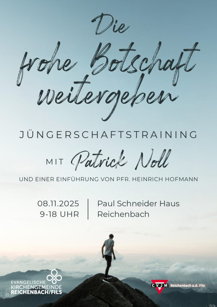 Jüngerschaftstraining mit Patrick Noll Ein Schulungstag mit praktischen Übungen, Impulsen und Austausch darüber, wie wir die frohe Botschaft im Alltag weitergeben können. Mit einer Einführung von Pfr. Heinrich Hofmann. 📅...