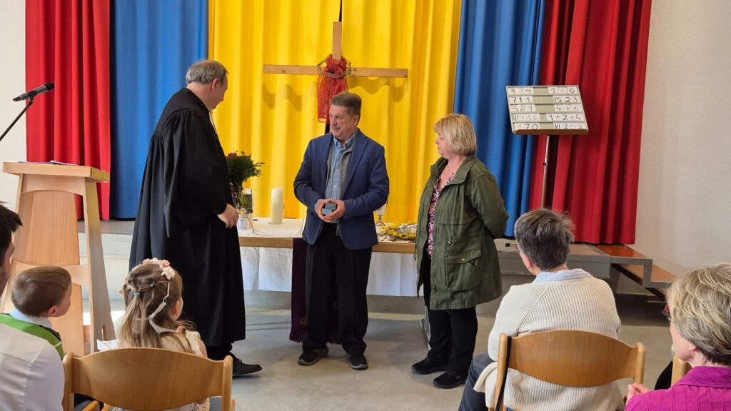Am Sonntag, 23.3. erhielt der 1. Vorsitzende des Kirchengemeinderates Wilfried Rayher für seinen über 30-jährigen ehrenamtlichen Einsatz für die Ortsgemeinde (Kirchengemeinderat seit 1996, KGR-Vorsitzender, Ansprechpartner der Robert-Schoettle-Kita, Verantwortlicher für Personal...