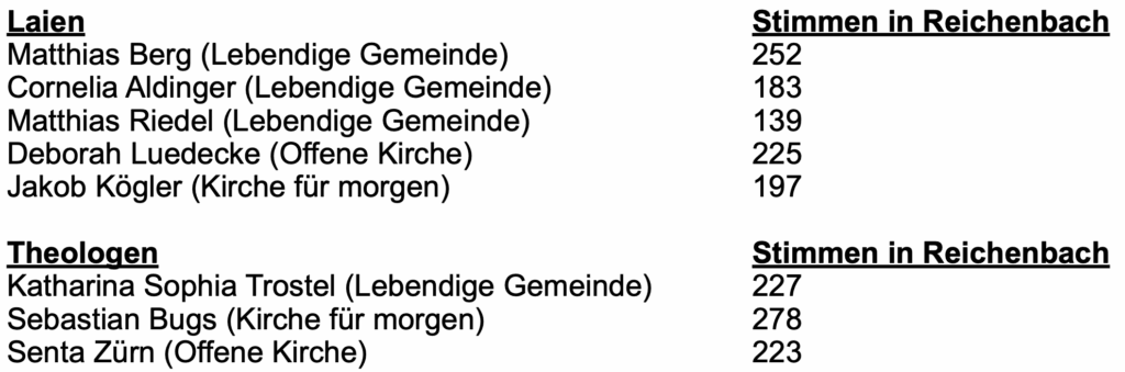 Ergebnisse der Wahlen zur Landessynode am 30.11.2025 in Reichenbach an der Fils